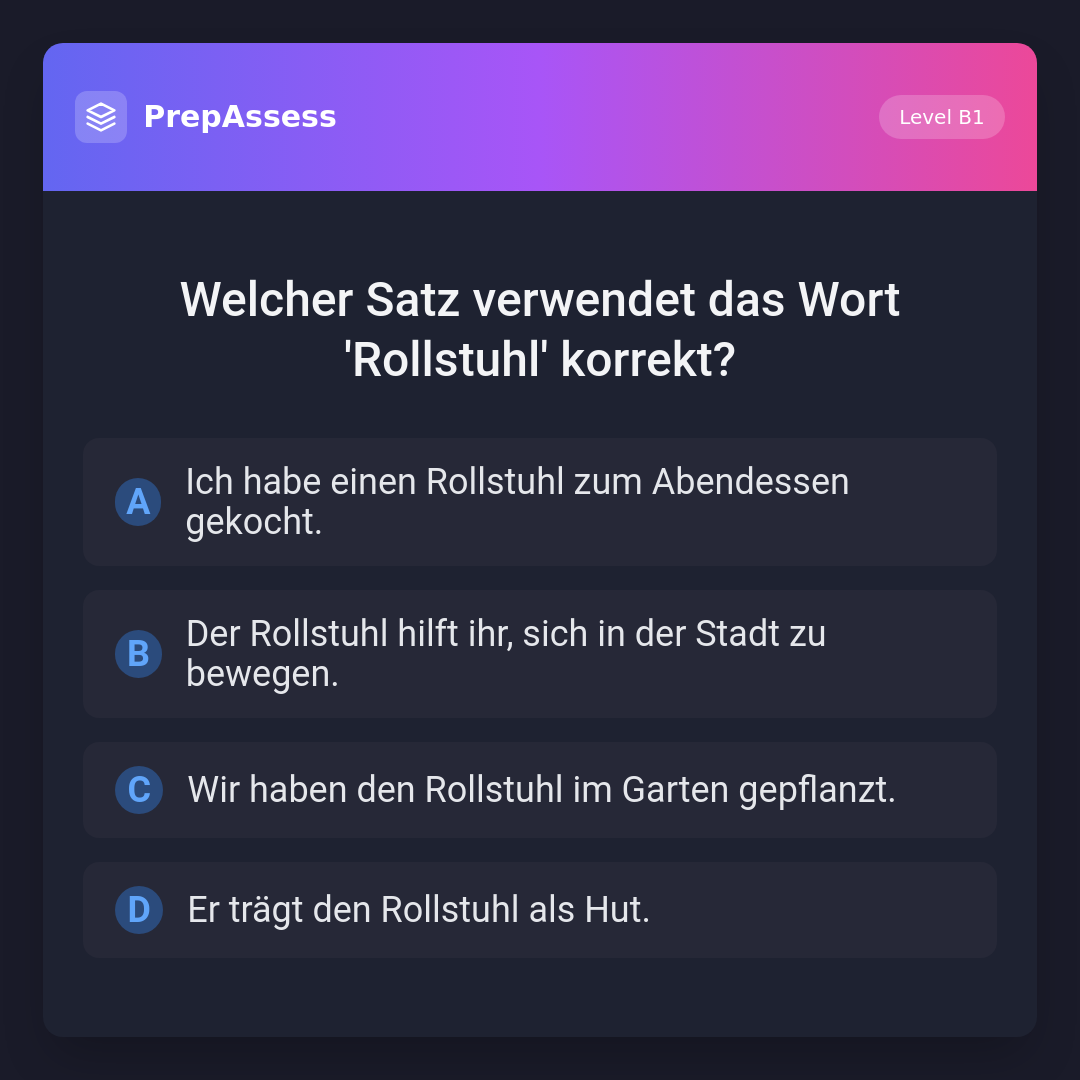 Welcher Satz verwendet das Wort 'Rollstuhl' korrekt?