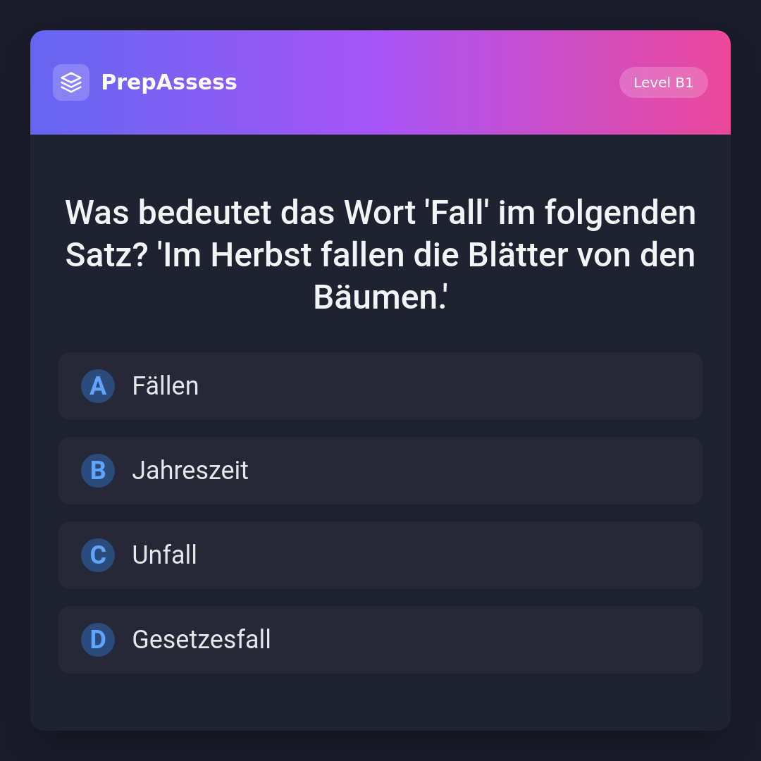 Was bedeutet das Wort 'Fall' im folgenden Satz? 'Im Herbst fallen die Blätter von den Bäumen.'