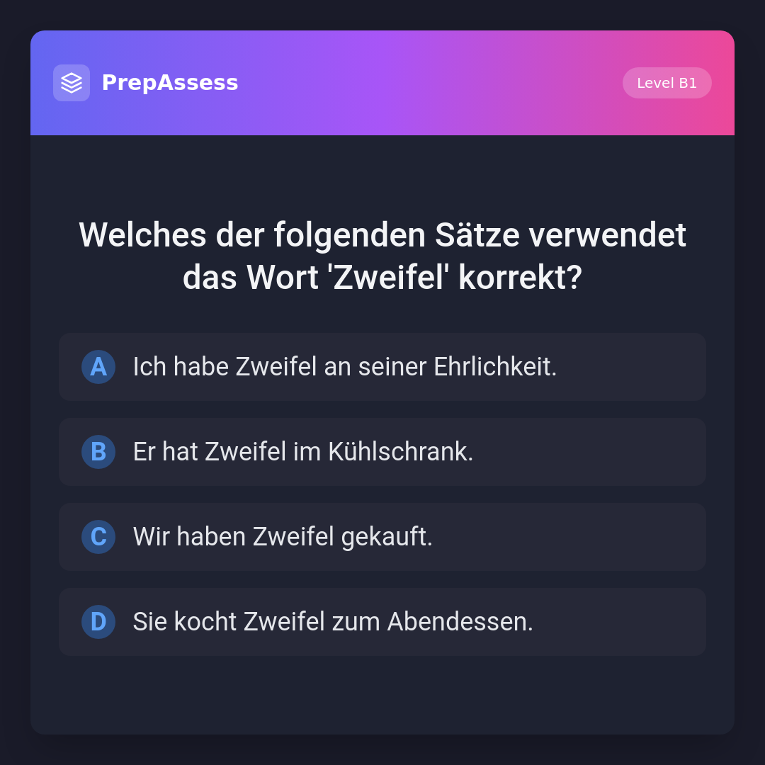 Welches der folgenden Sätze verwendet das Wort 'Zweifel' korrekt?