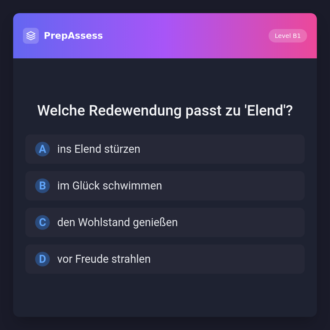 Welche Redewendung passt zu 'Elend'?