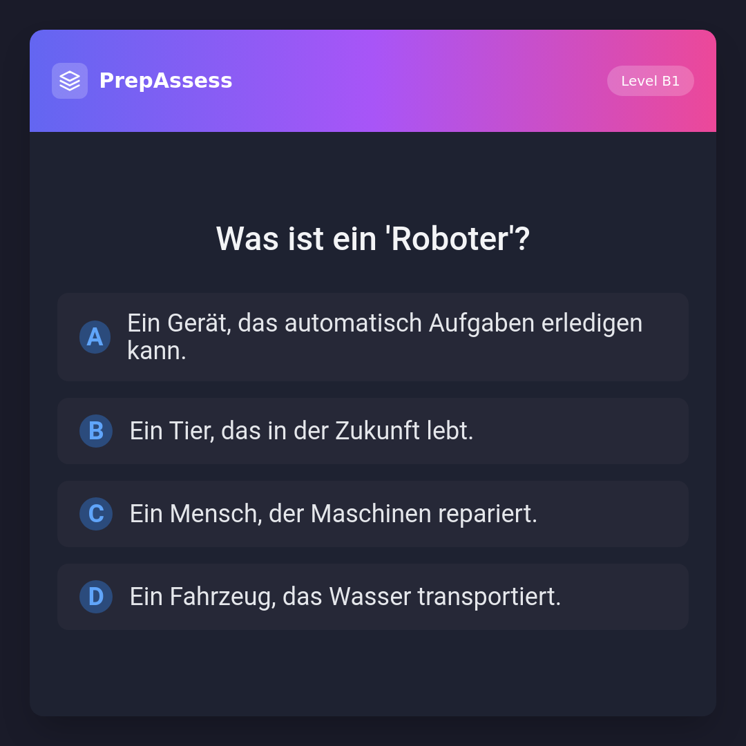 Ein 'Roboter' ist ein Gerät oder eine Maschine, die Aufgaben automatisch oder mit minimalem menschlichen Eingriff ausführen kann. Option b, c und d beschreiben keine Roboter.