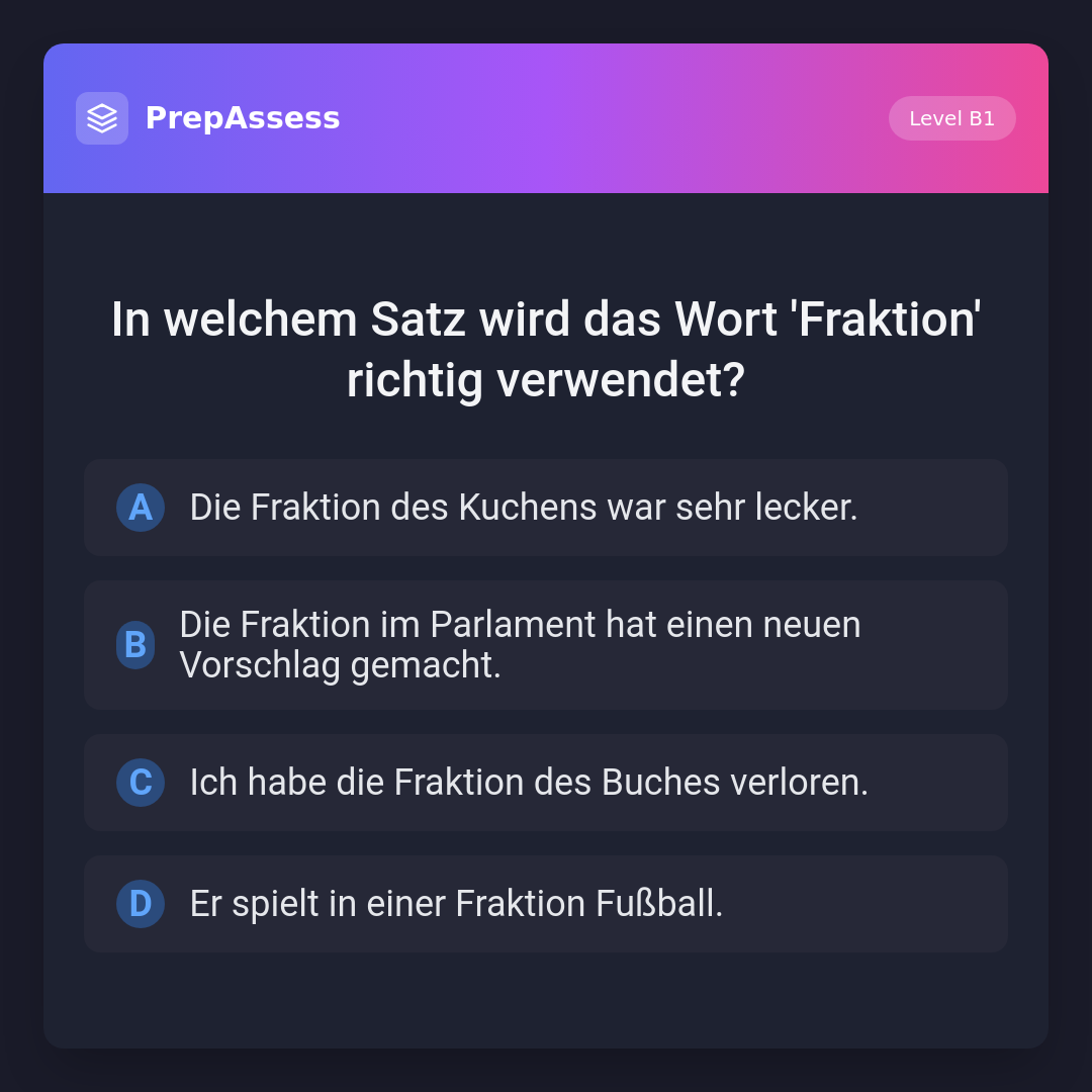 In welchem Satz wird das Wort 'Fraktion' richtig verwendet?