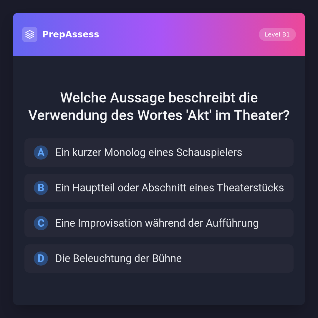 Welche Aussage beschreibt die Verwendung des Wortes 'Akt' im Theater?