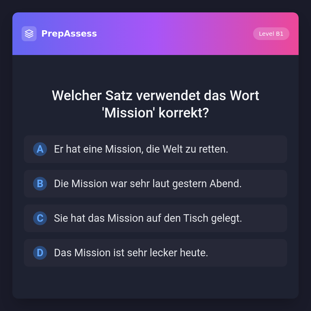Welcher Satz verwendet das Wort 'Mission' korrekt?