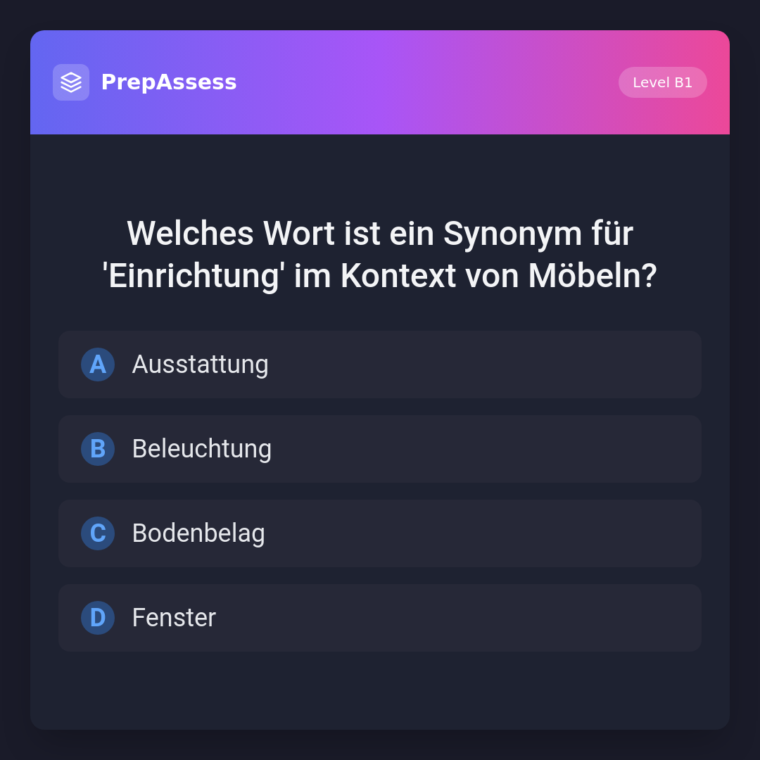 Welches Wort ist ein Synonym für 'Einrichtung' im Kontext von Möbeln?