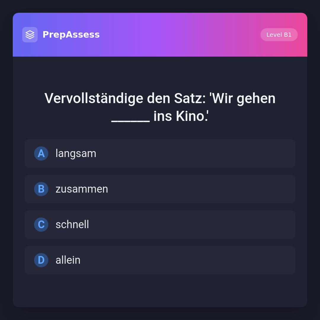 Vervollständige den Satz: 'Wir gehen ______ ins Kino.'