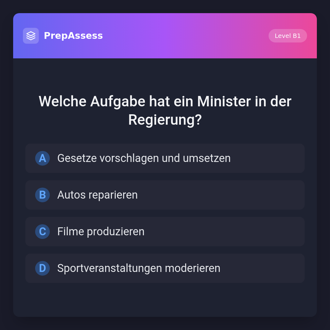 Welche Aufgabe hat ein Minister in der Regierung?