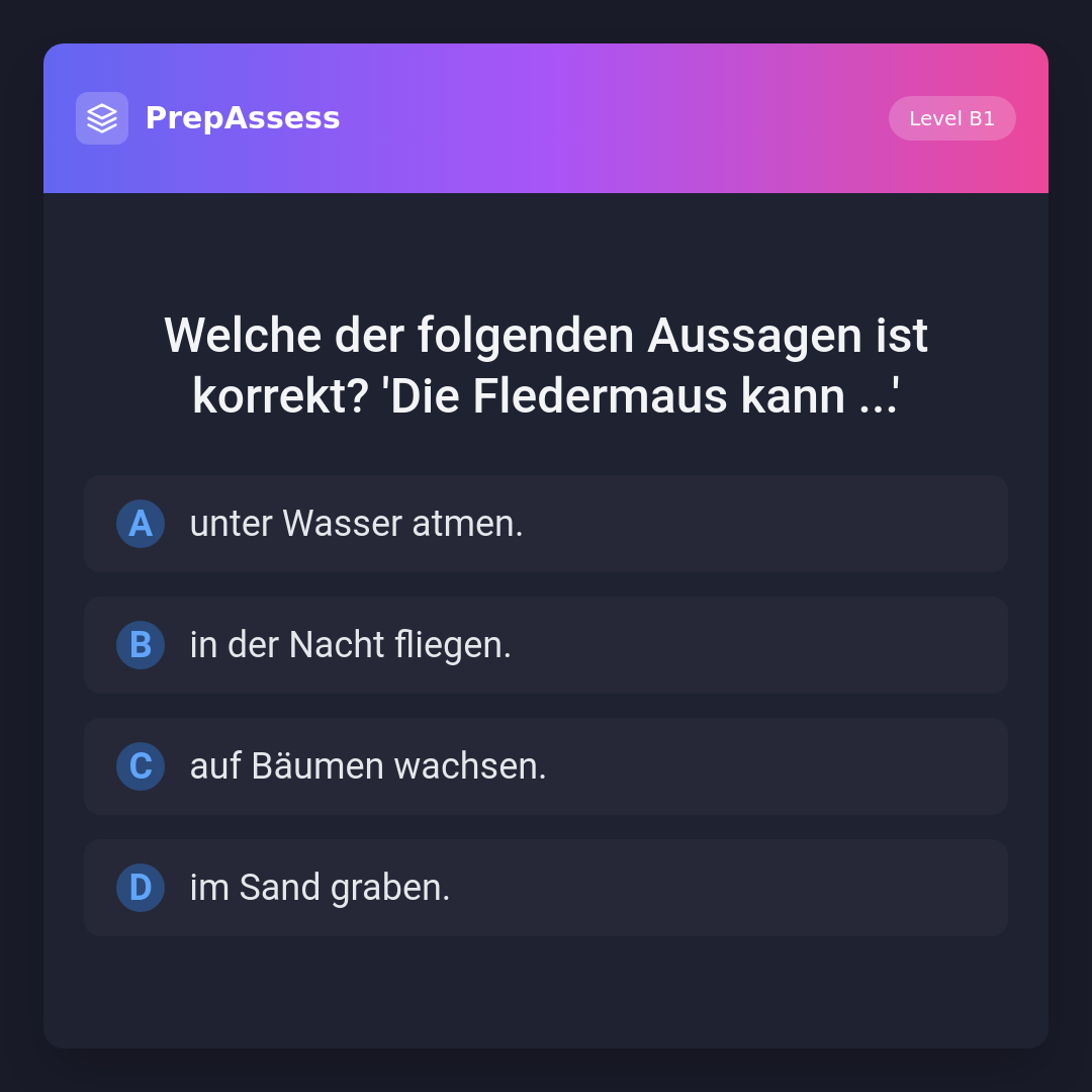 Welche der folgenden Aussagen ist korrekt? 'Die Fledermaus kann ...'