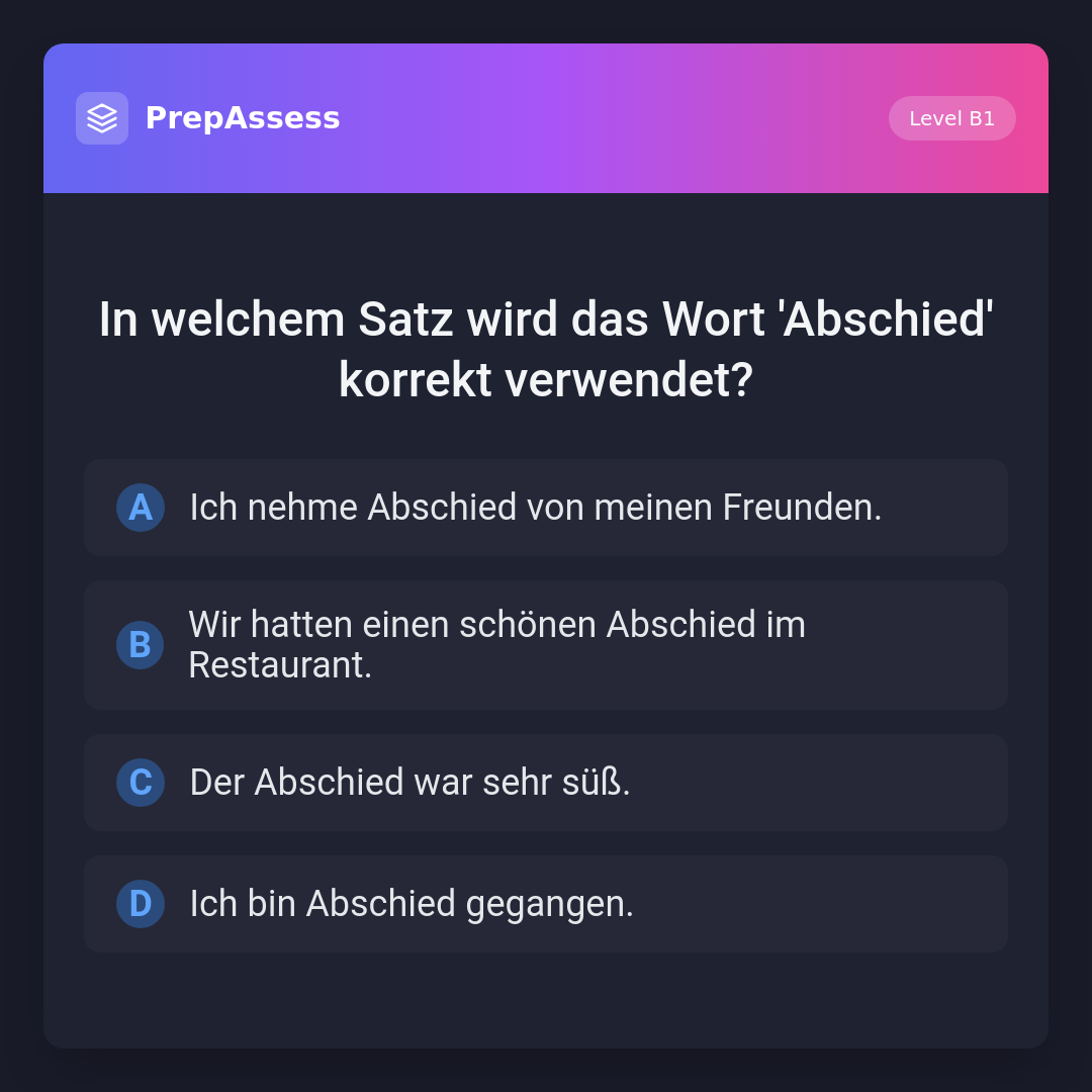 In welchem Satz wird das Wort 'Abschied' korrekt verwendet?