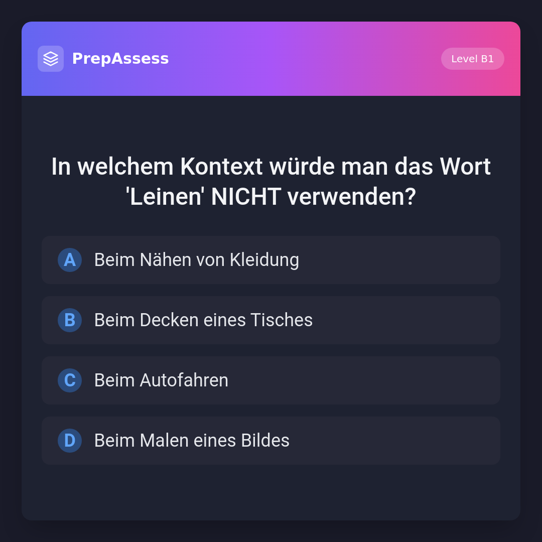 In welchem Kontext würde man das Wort 'Leinen' NICHT verwenden?