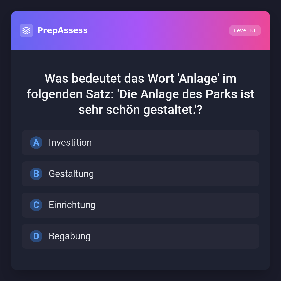 Was bedeutet das Wort 'Anlage' im folgenden Satz: 'Die Anlage des Parks ist sehr schön gestaltet.'?