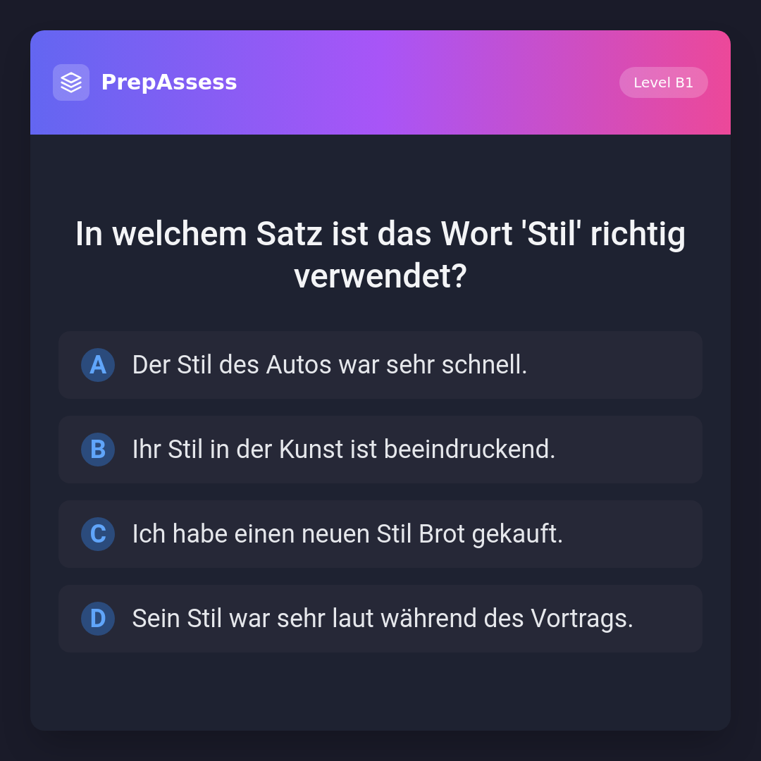 In welchem Satz ist das Wort 'Stil' richtig verwendet?