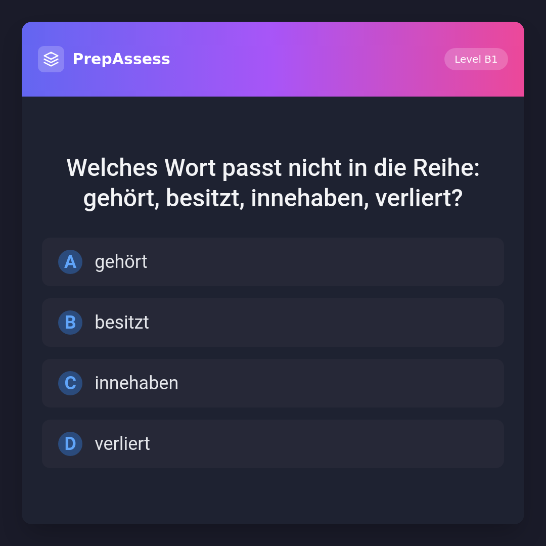 Welches Wort passt nicht in die Reihe: gehört, besitzt, innehaben, verliert?