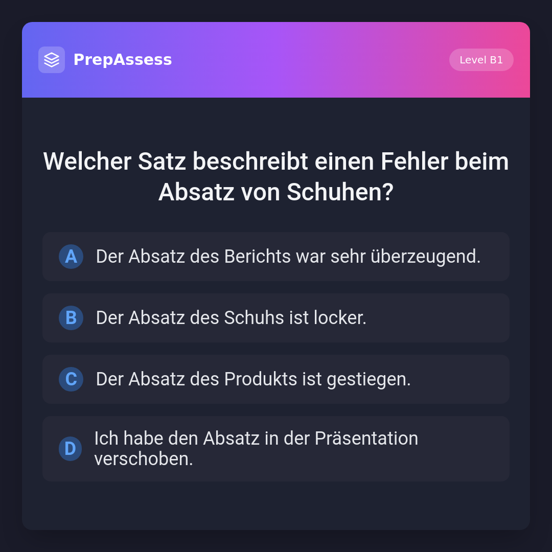 Welcher Satz beschreibt einen Fehler beim Absatz von Schuhen?