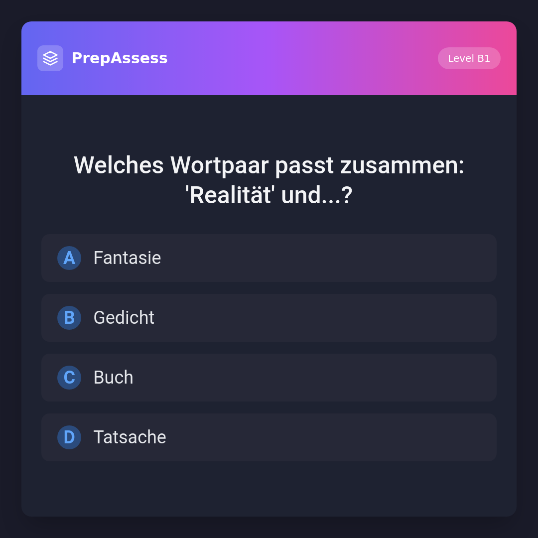 Welches Wortpaar passt zusammen: 'Realität' und...?