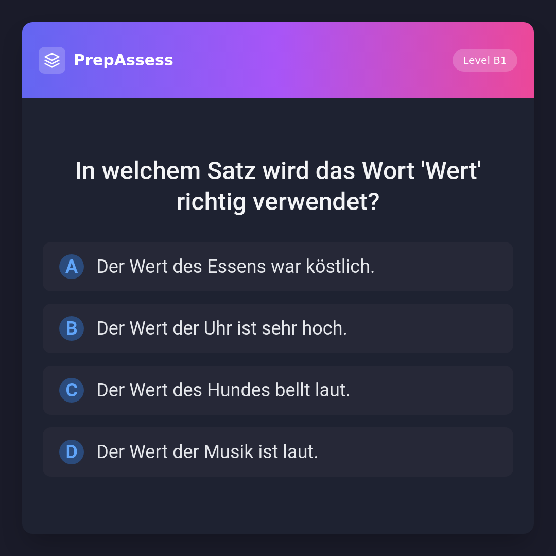 In welchem Satz wird das Wort 'Wert' richtig verwendet?