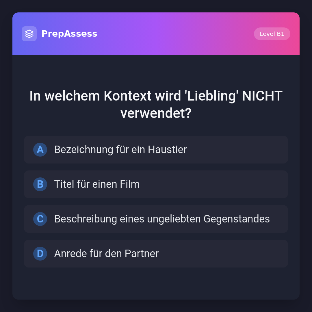 In welchem Kontext wird 'Liebling' NICHT verwendet?