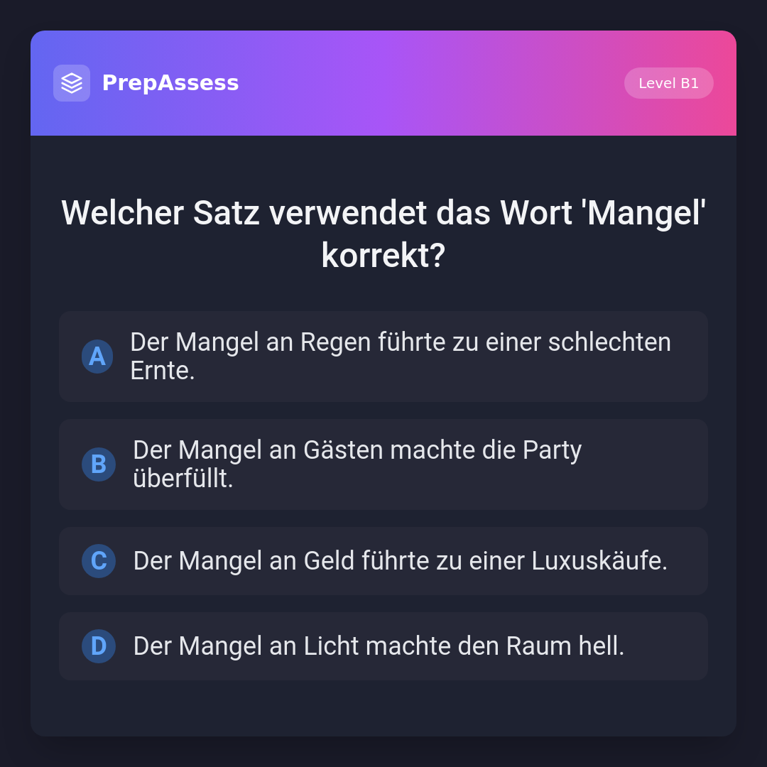 Welcher Satz verwendet das Wort 'Mangel' korrekt?