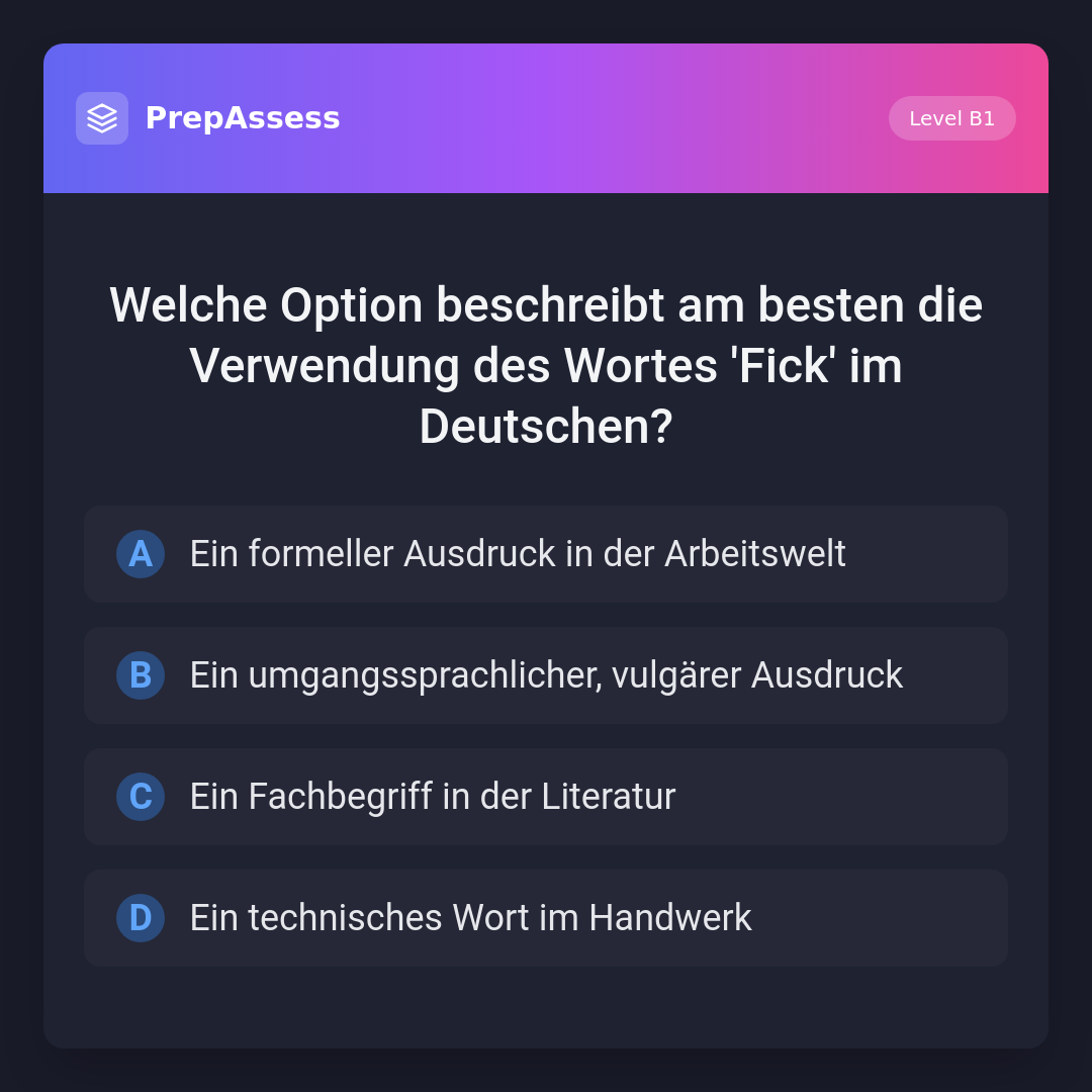 Welche Option beschreibt am besten die Verwendung des Wortes 'Fick' im Deutschen?