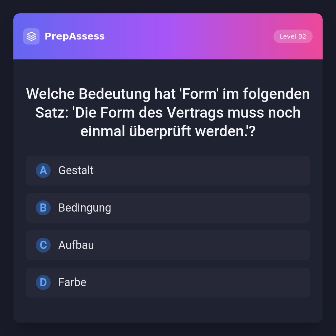 Welche Bedeutung hat 'Form' im folgenden Satz: 'Die Form des Vertrags muss noch einmal überprüft werden.'?