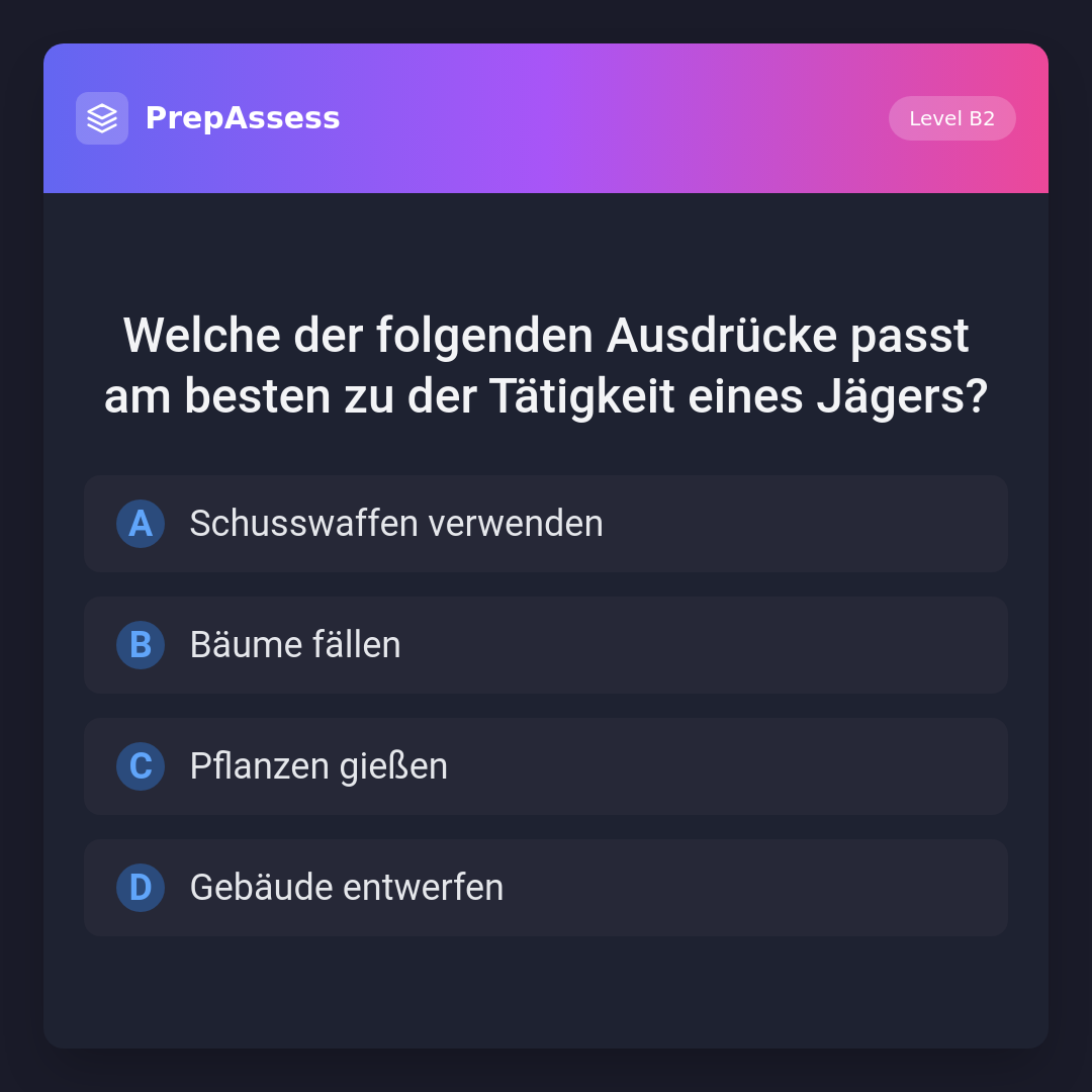 Welche der folgenden Ausdrücke passt am besten zu der Tätigkeit eines Jägers?