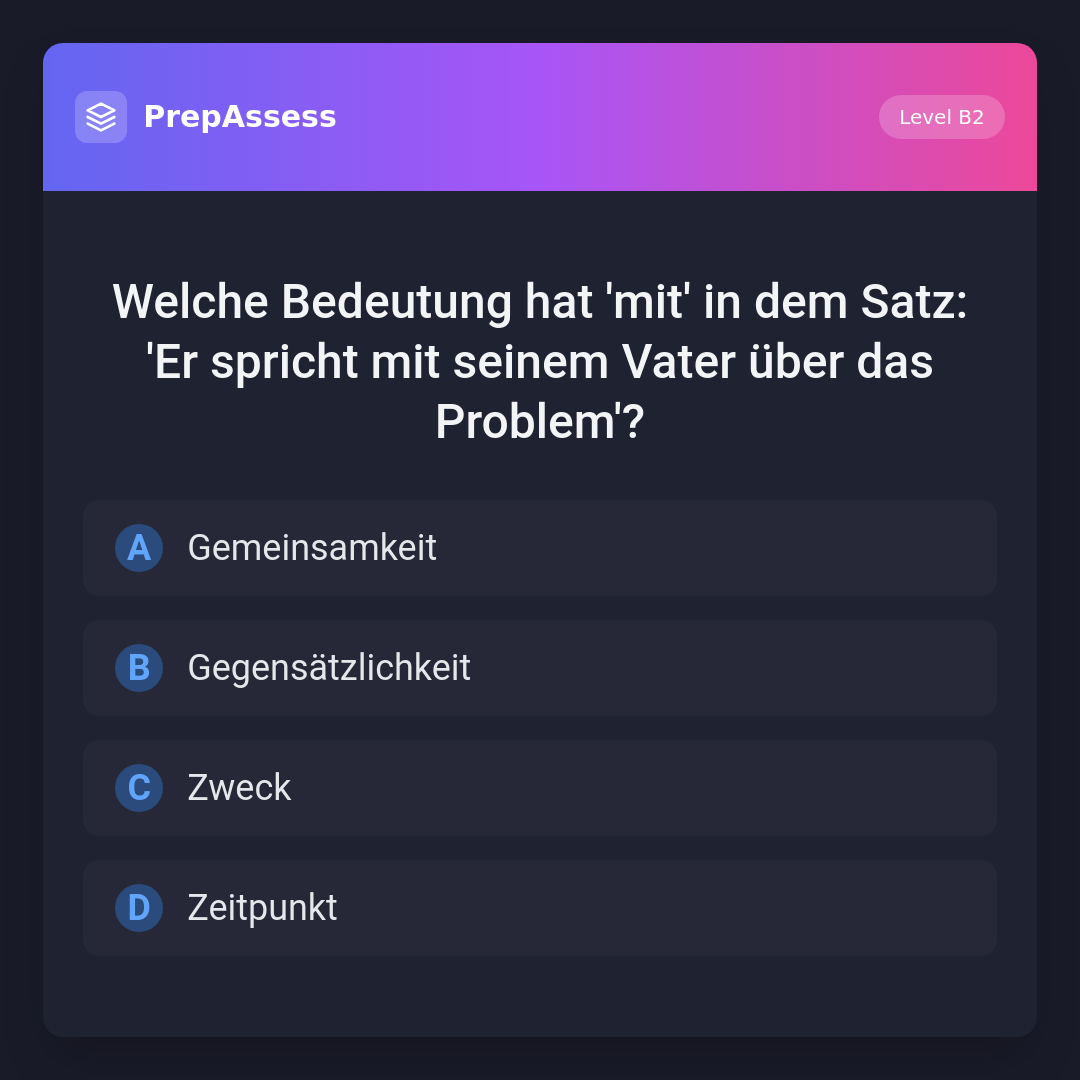 Welche Bedeutung hat 'mit' in dem Satz: 'Er spricht mit seinem Vater über das Problem'?