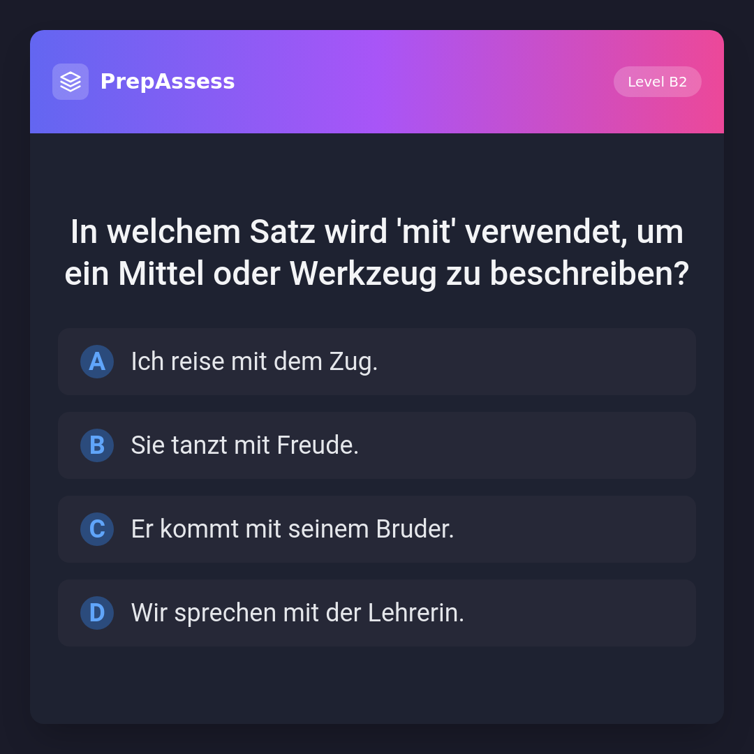 In welchem Satz wird 'mit' verwendet, um ein Mittel oder Werkzeug zu beschreiben?