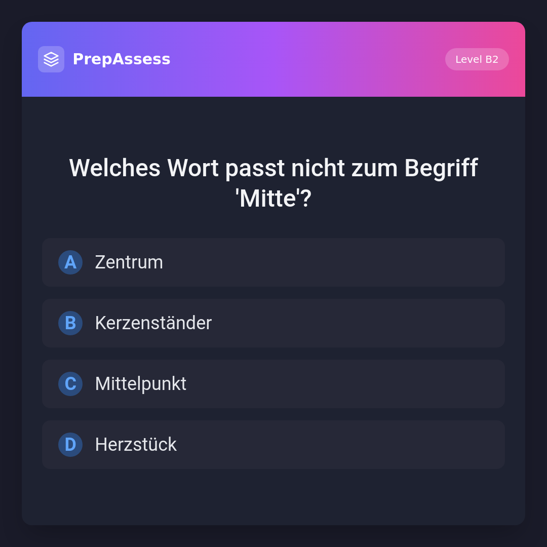 Welches Wort passt nicht zum Begriff 'Mitte'?