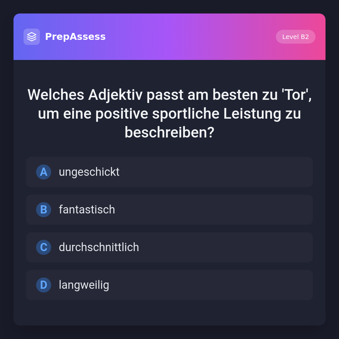 Welches Adjektiv passt am besten zu 'Tor', um eine positive sportliche Leistung zu beschreiben?