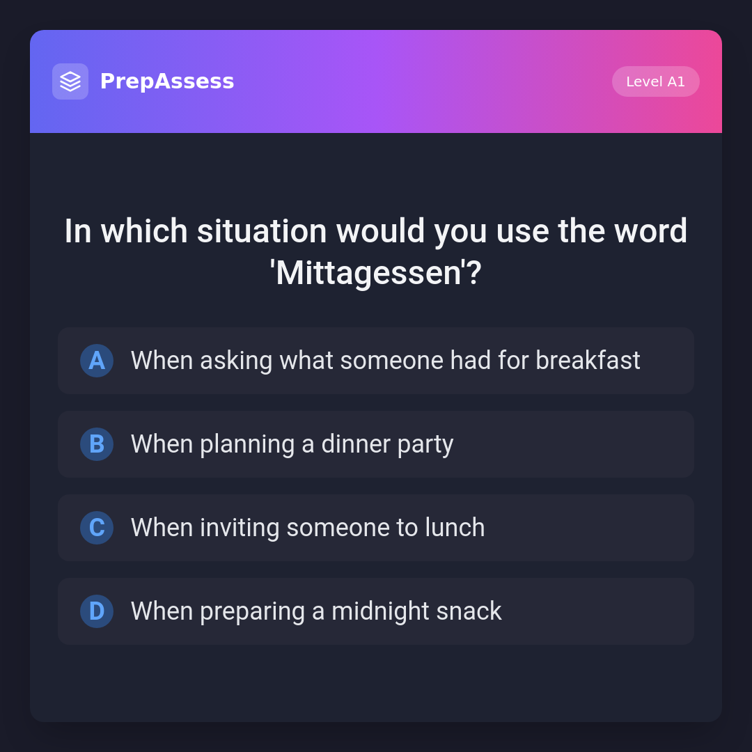 In which situation would you use the word 'Mittagessen'?
