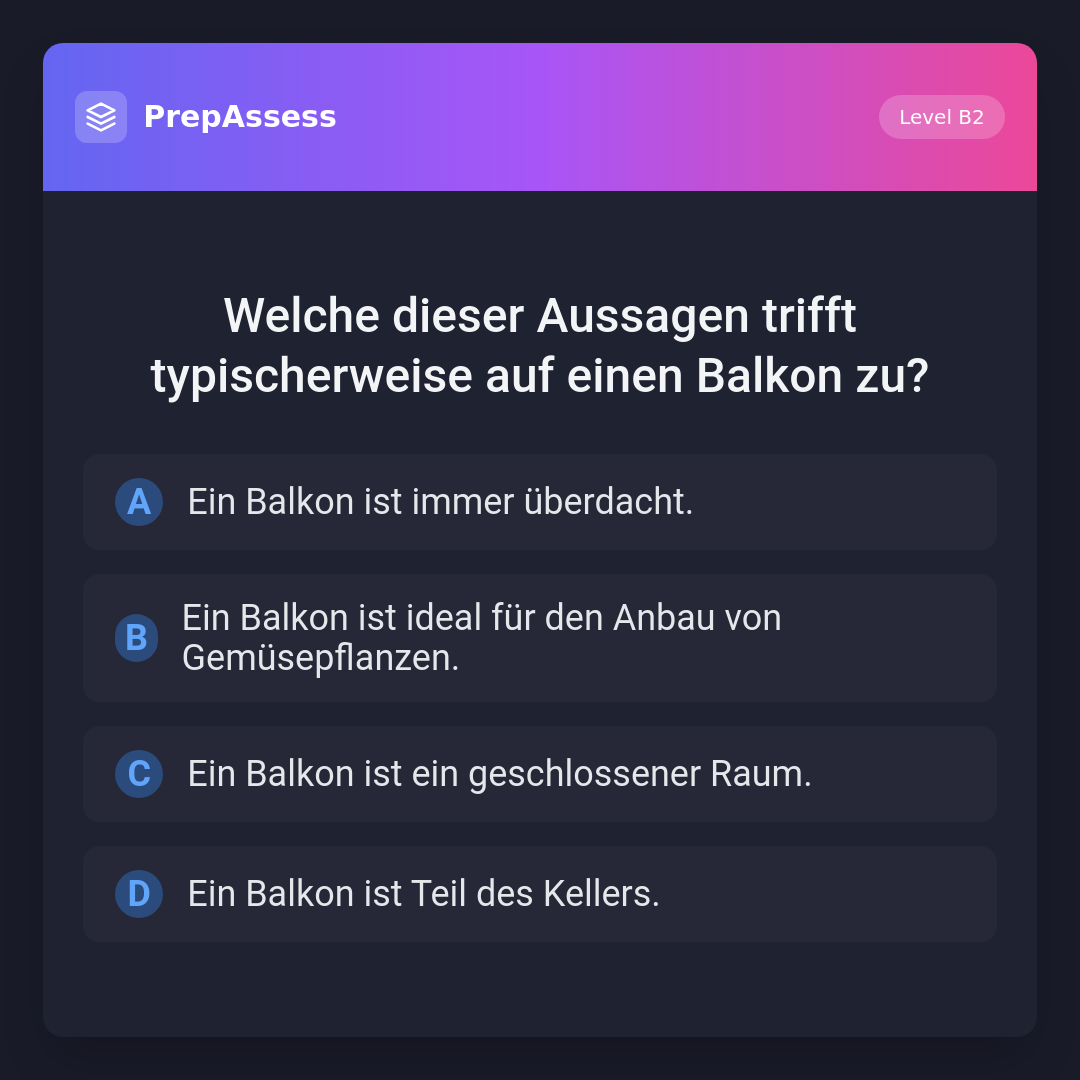 Welche dieser Aussagen trifft typischerweise auf einen Balkon zu?