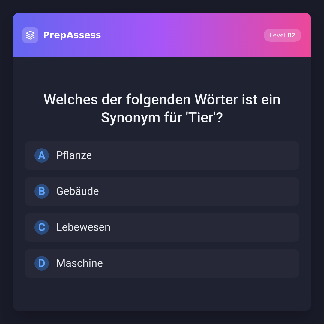Welches der folgenden Wörter ist ein Synonym für 'Tier'?