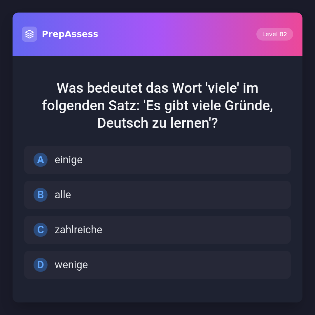 Was bedeutet das Wort 'viele' im folgenden Satz: 'Es gibt viele Gründe, Deutsch zu lernen'?