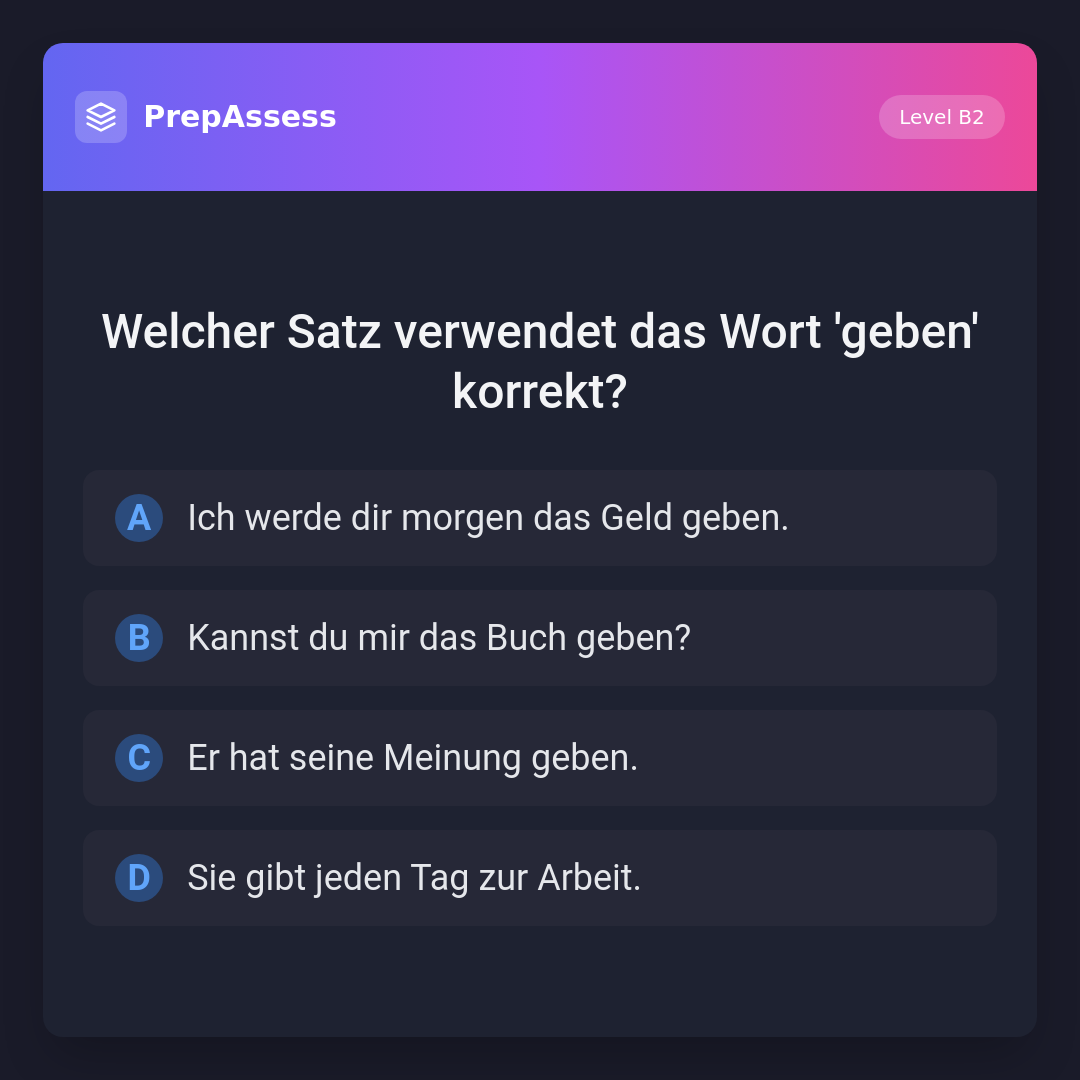 Welcher Satz verwendet das Wort 'geben' korrekt?