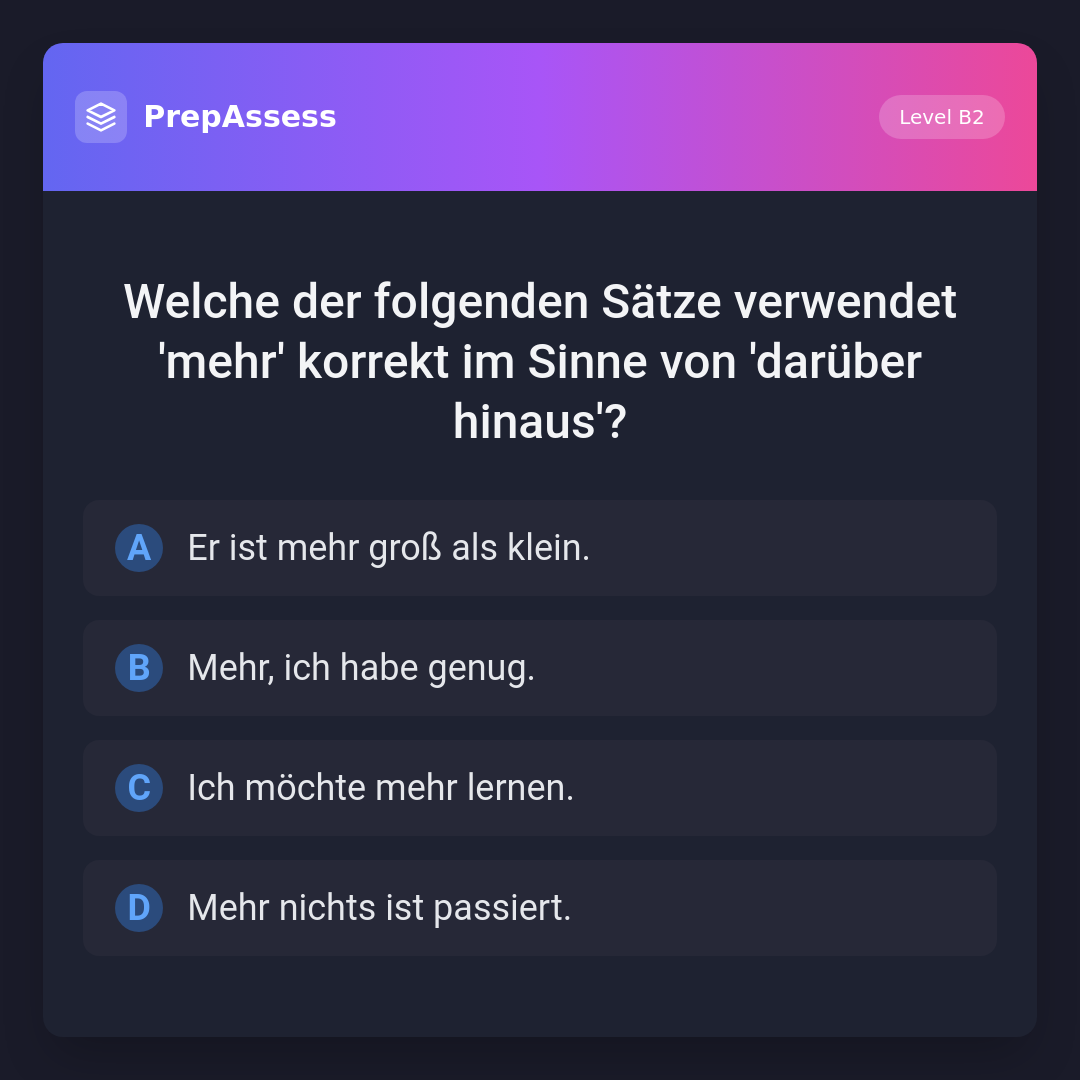 Welche der folgenden Sätze verwendet 'mehr' korrekt im Sinne von 'darüber hinaus'?