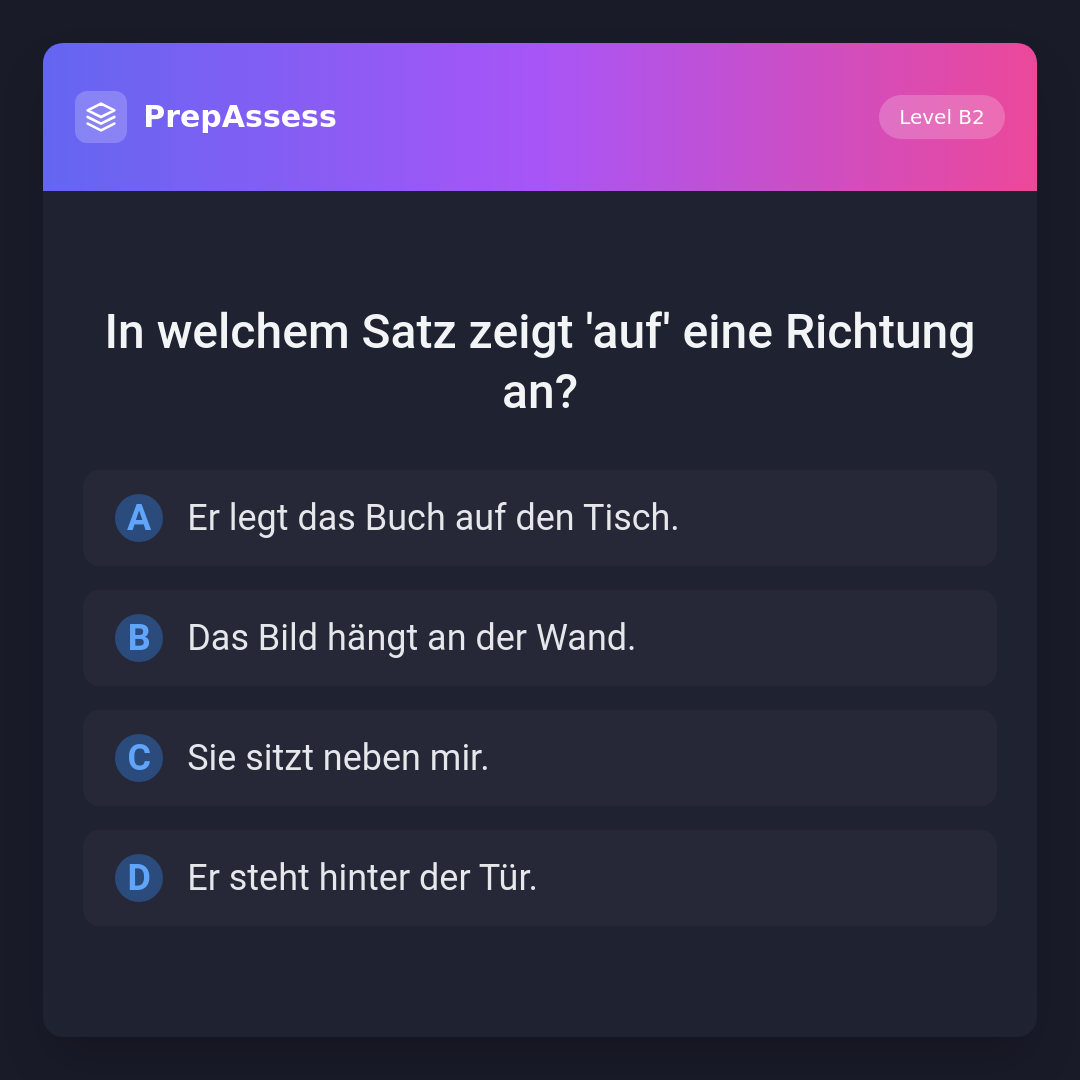 In welchem Satz zeigt 'auf' eine Richtung an?