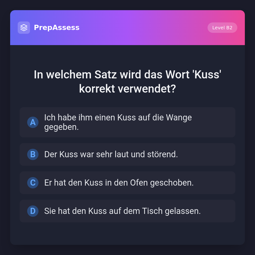 In welchem Satz wird das Wort 'Kuss' korrekt verwendet?