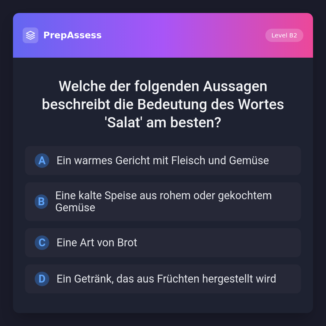 Welche der folgenden Aussagen beschreibt die Bedeutung des Wortes 'Salat' am besten?