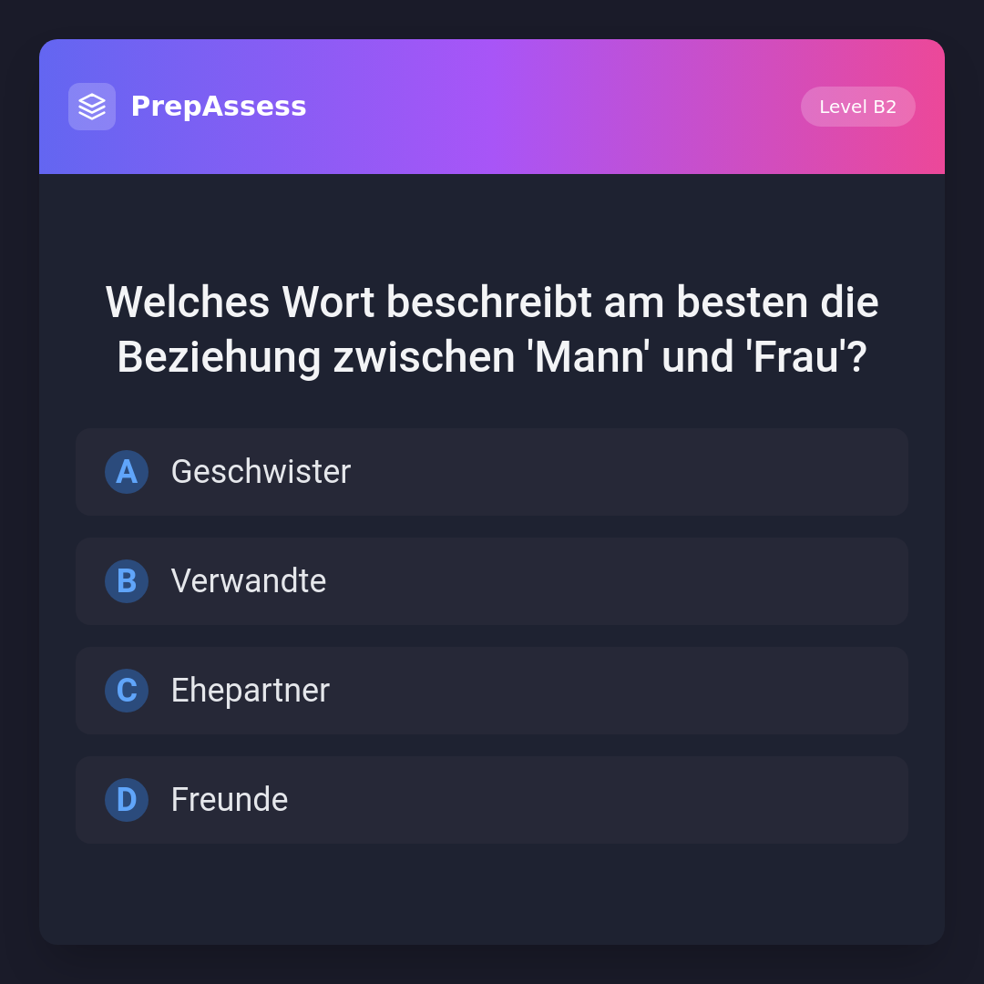 Welches Wort beschreibt am besten die Beziehung zwischen 'Mann' und 'Frau'?
