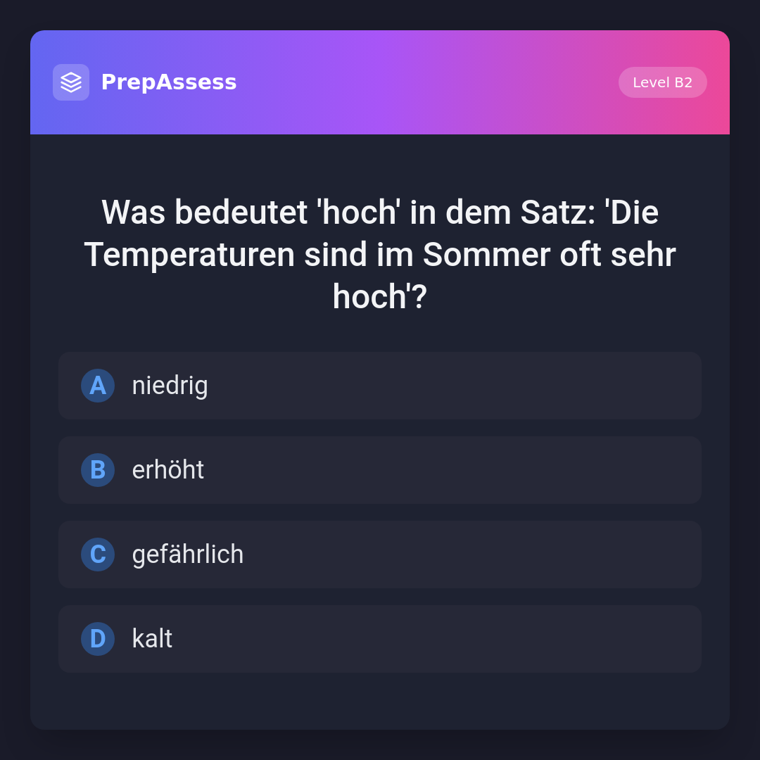 Was bedeutet 'hoch' in dem Satz: 'Die Temperaturen sind im Sommer oft sehr hoch'?