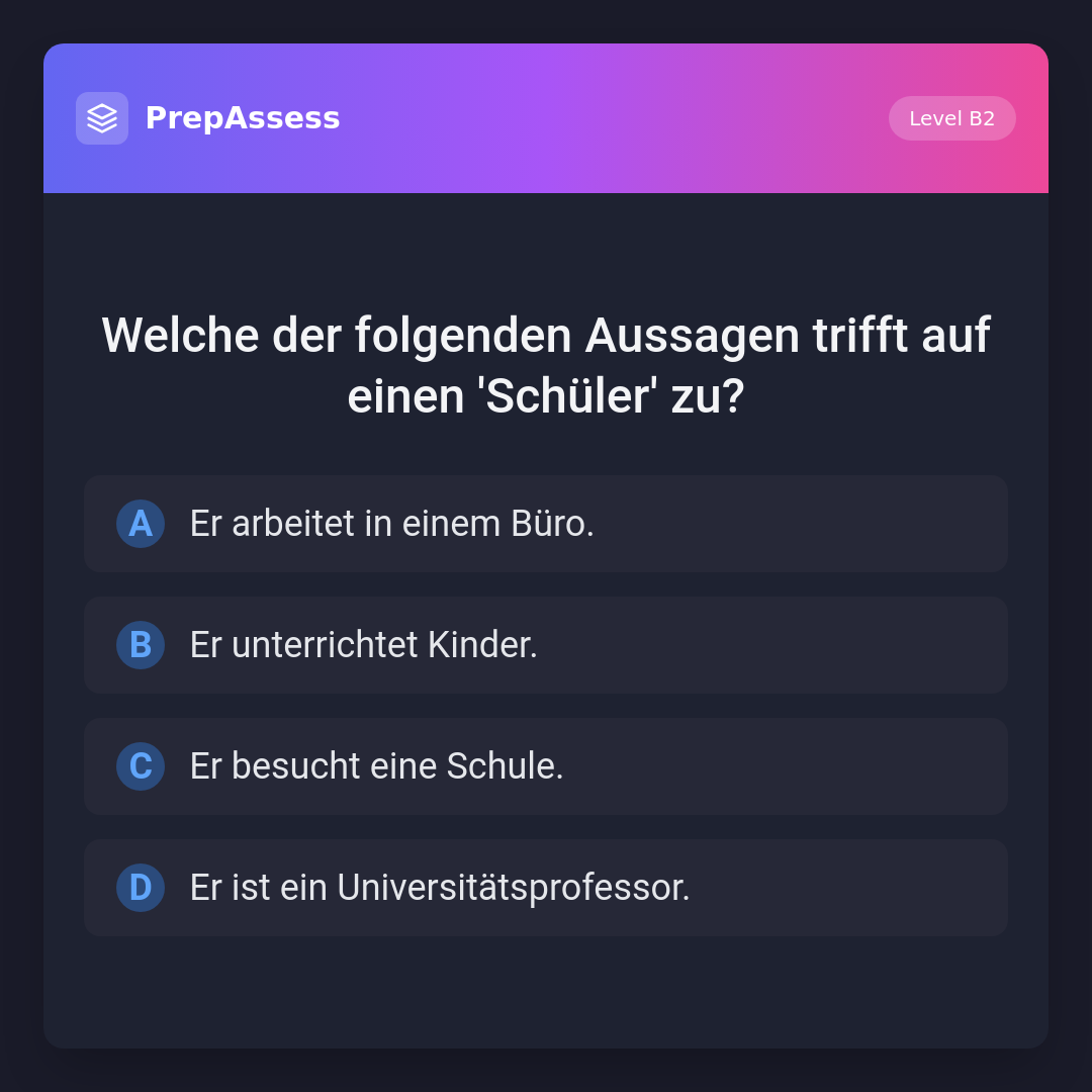 Welche der folgenden Aussagen trifft auf einen 'Schüler' zu?