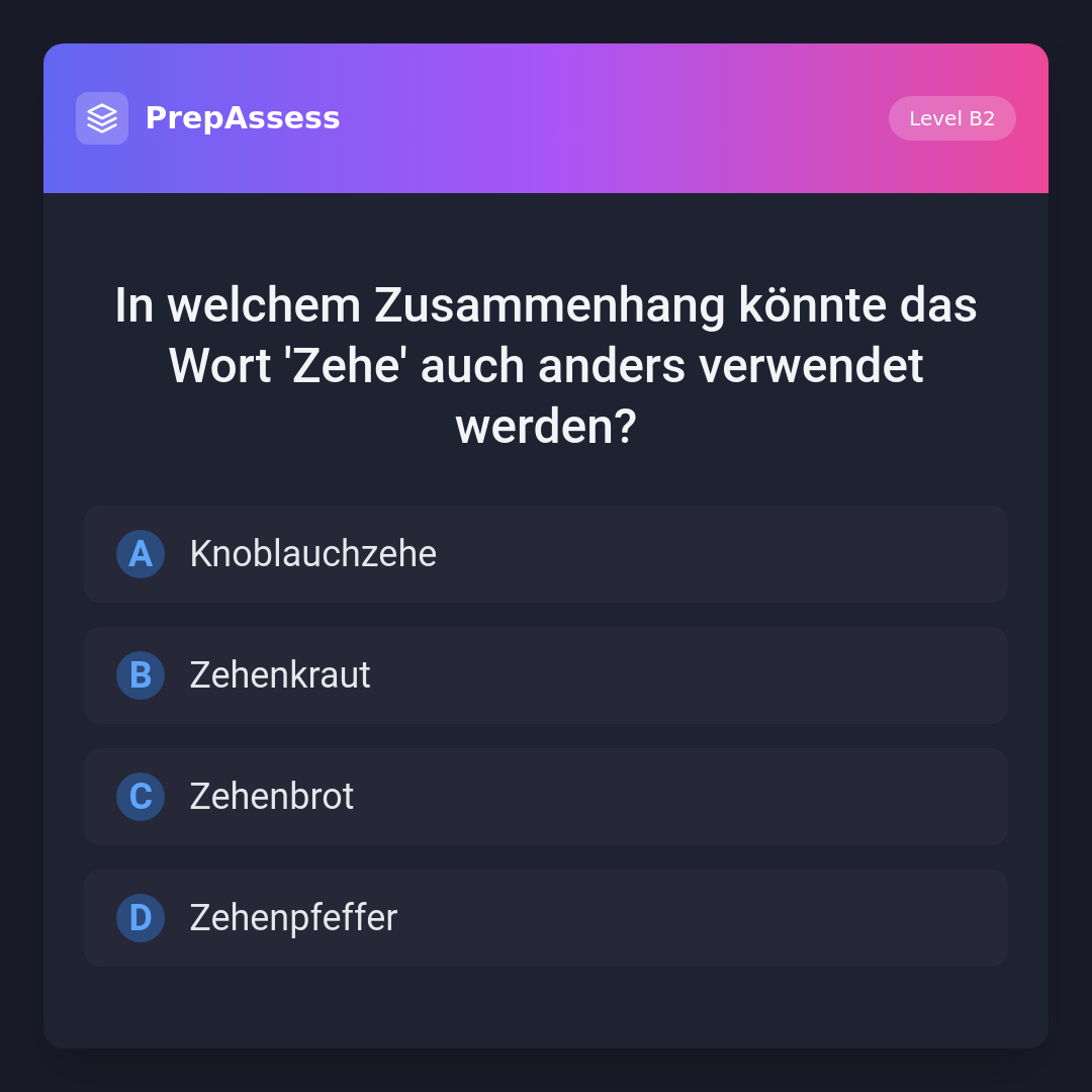 In welchem Zusammenhang könnte das Wort 'Zehe' auch anders verwendet werden?