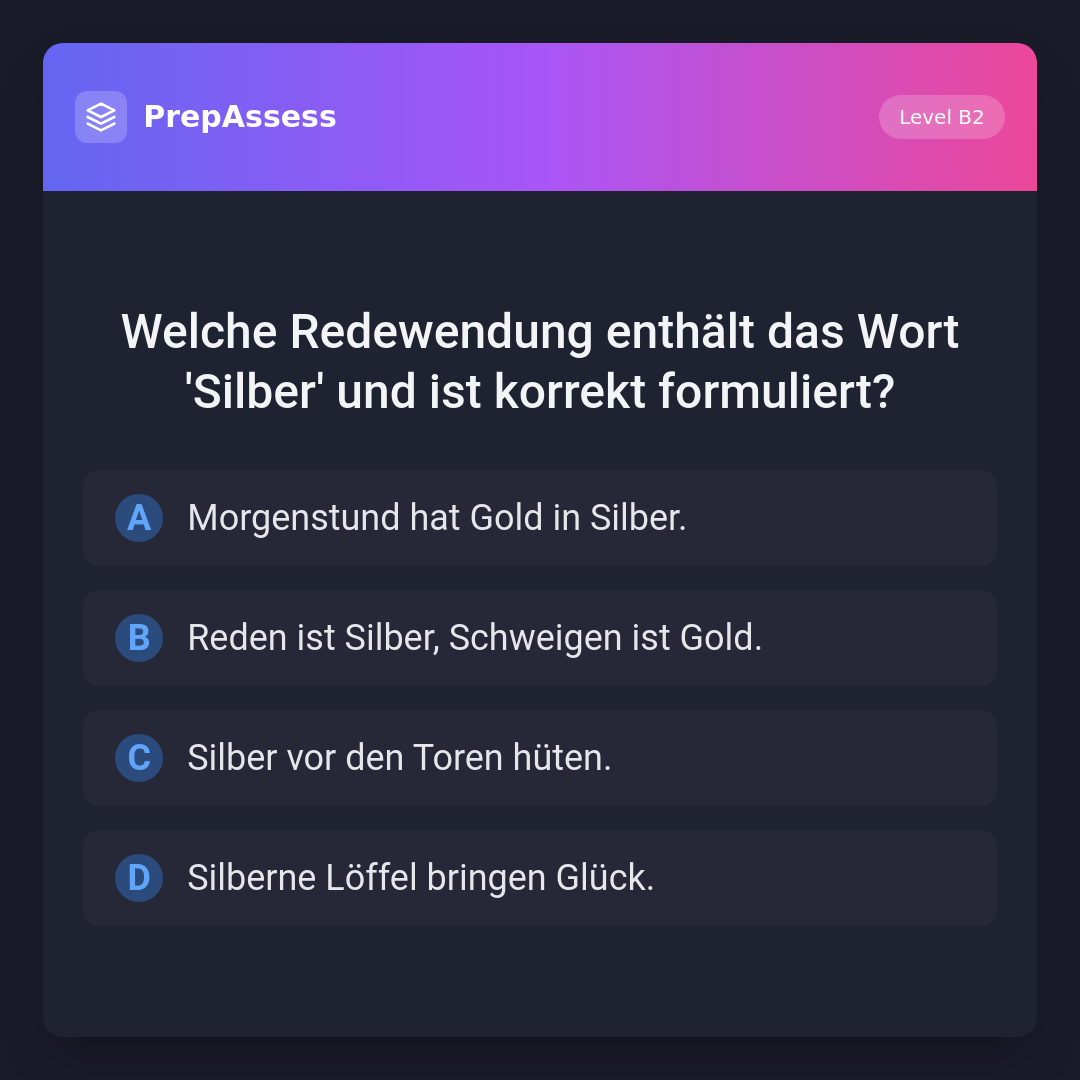 Welche Redewendung enthält das Wort 'Silber' und ist korrekt formuliert?