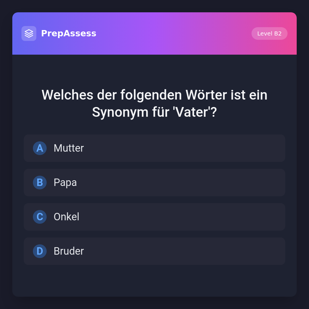 Welches der folgenden Wörter ist ein Synonym für 'Vater'?
