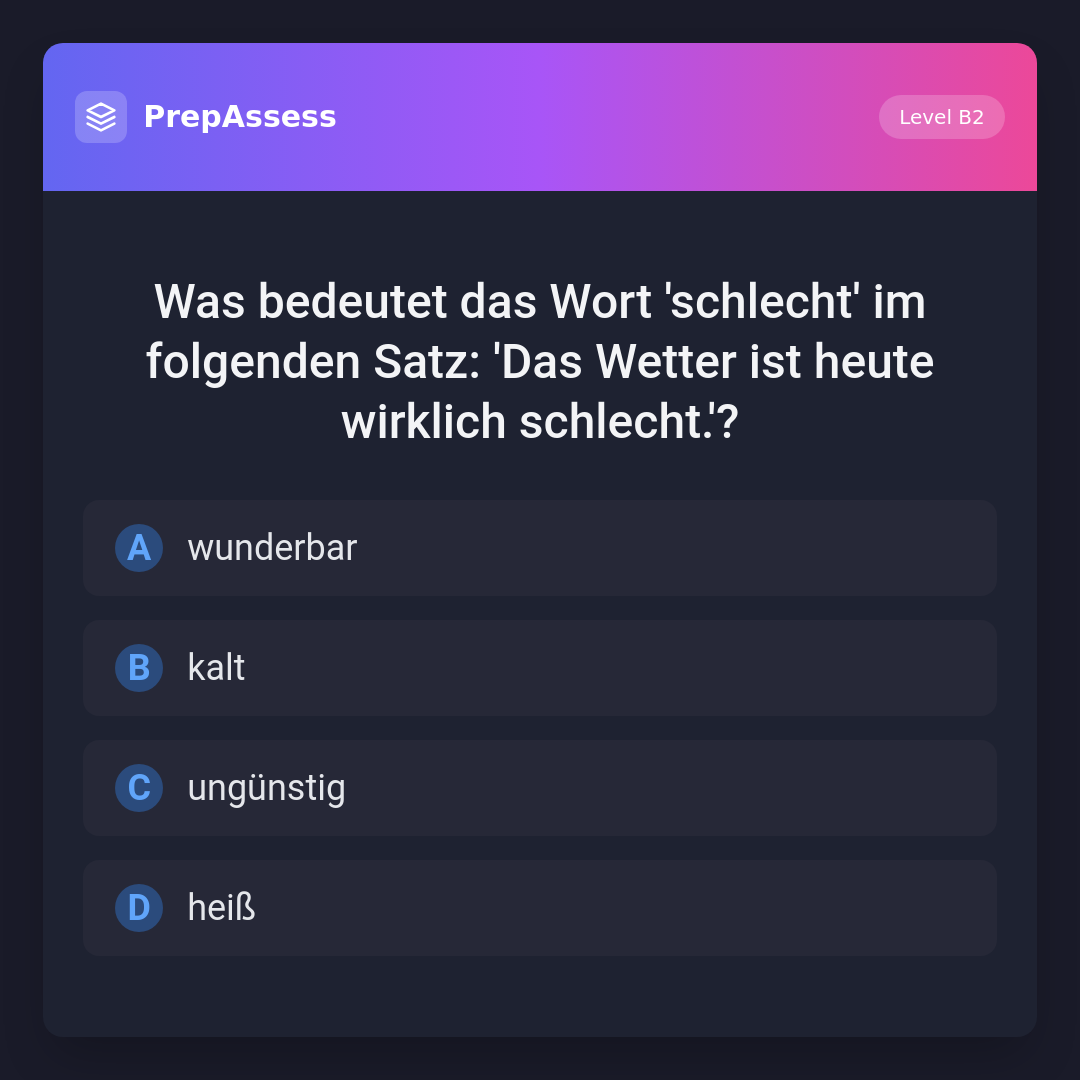 Was bedeutet das Wort 'schlecht' im folgenden Satz: 'Das Wetter ist heute wirklich schlecht.'?