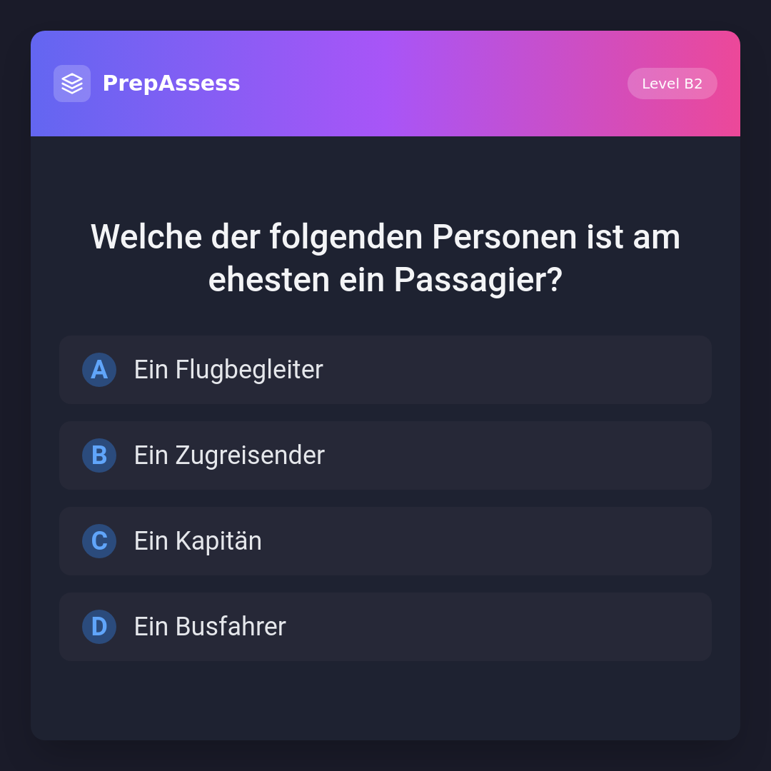 Welche der folgenden Personen ist am ehesten ein Passagier?