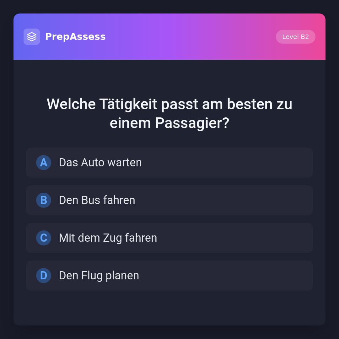 Welche Tätigkeit passt am besten zu einem Passagier?
