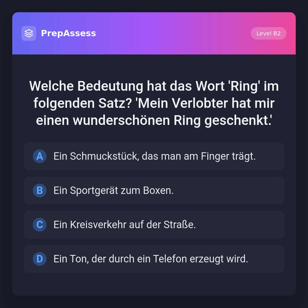 Welche Bedeutung hat das Wort 'Ring' im folgenden Satz? 'Mein Verlobter hat mir einen wunderschönen Ring geschenkt.'