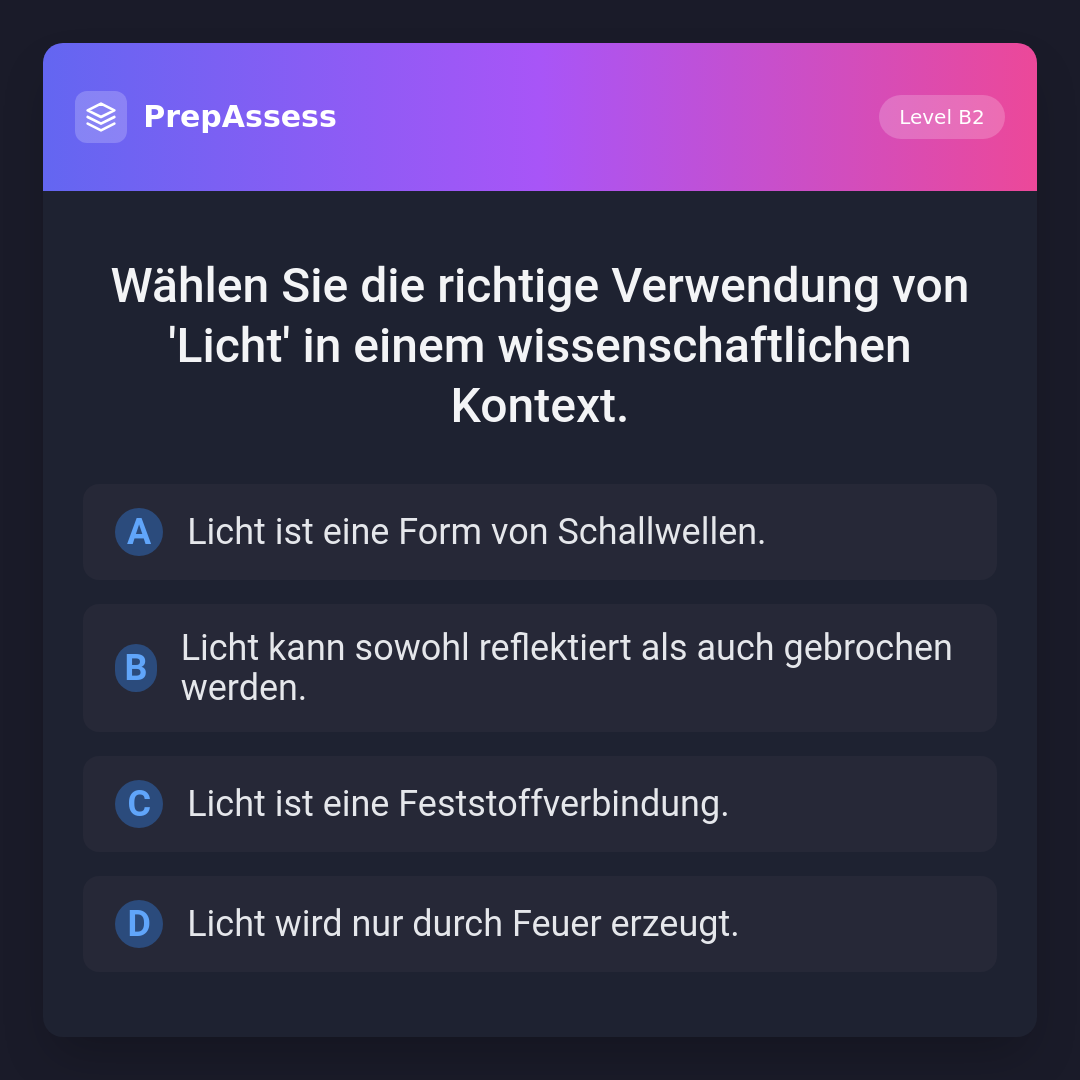 Wählen Sie die richtige Verwendung von 'Licht' in einem wissenschaftlichen Kontext.