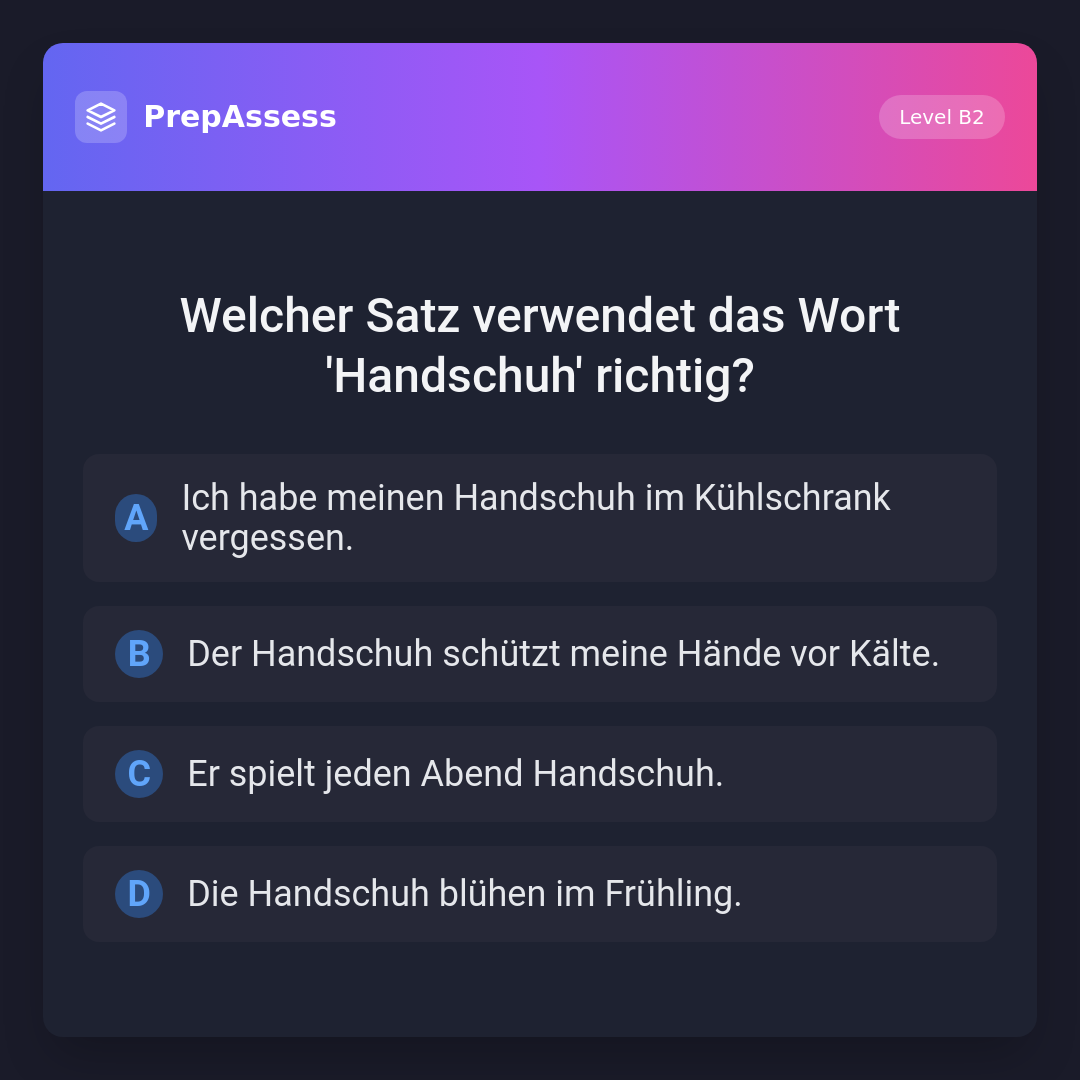 Welcher Satz verwendet das Wort 'Handschuh' richtig?